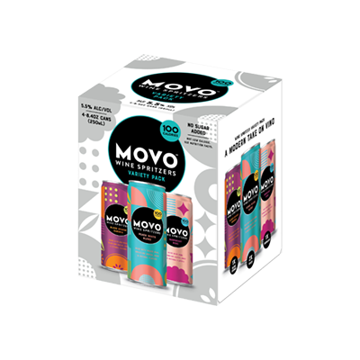 Currently unavailable MOVO WINE SPRITZERS VARIETY Beer, Hard Seltzer & Cider Pre-Mixed Cocktail MOVO Wine Spritzers are a modern take on vino, bringing fun and portability to wine. Crafted with simple ingredients, MOVO is the perfect blend of premium wine, sparkling water and real fruit juice. 6.0% ABV Details